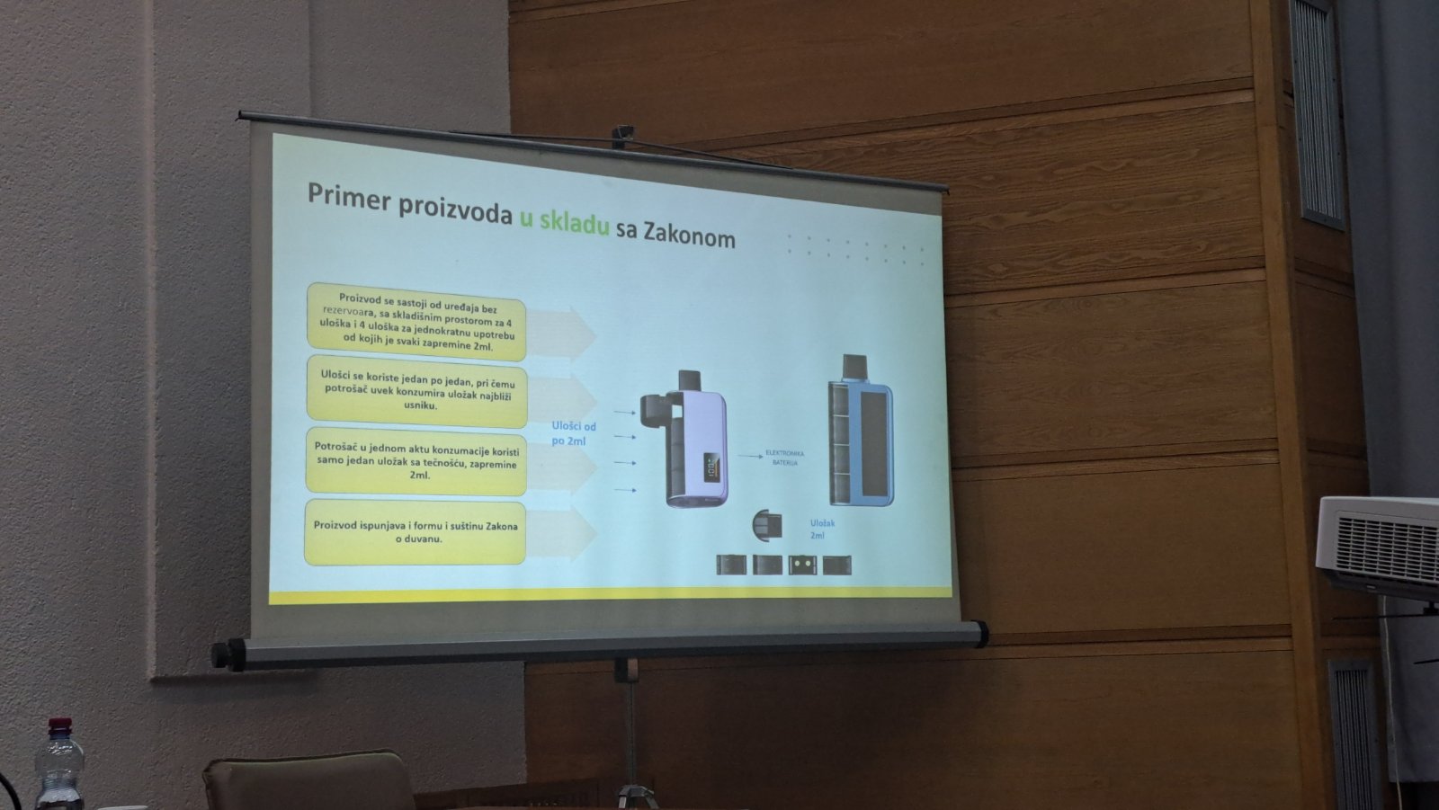 У уводном делу радионице, Предраг Брајовић, консултант у области развоја сродних производа, представио је делове и конструкцију електронских цигарета, објашњавајући њихову намену, техничке карактеристике и функционалне разлике међу уређајима, са посебним освртом на елементе који су од значаја за процену усклађености са Законом о дувану.