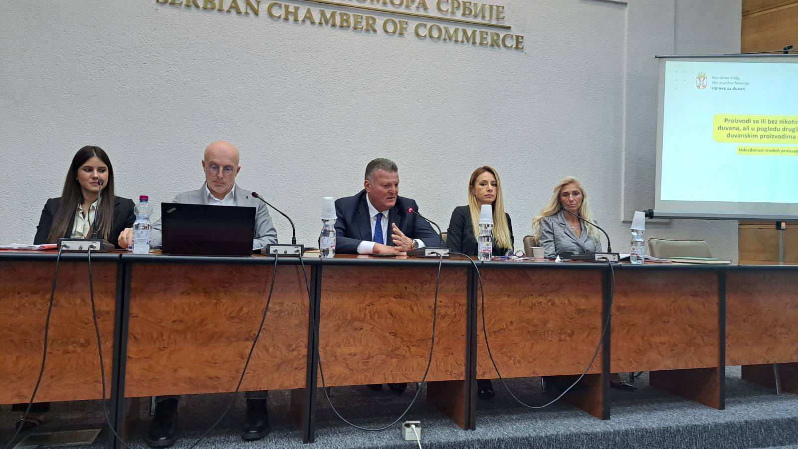 Управа за дуван је, у сарадњи са Привредном комором Србије, организовала стручну радионицу на тему „Усклађеност сродних производа на тржишту са Законом о дувану“ , у петак, 3. октобра 2025. године, у просторијама Привредне коморе Србије.